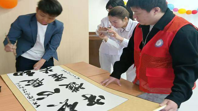 精彩的節目表演環節將活動推向了高潮。婦幼保健院兒童康復中心康復治療師帶來了充滿活力的《少年有志》表演,展現了康復治療師們的專業素養和對孩子們的關愛。孤獨癥兒童融合班的小朋友們則用非洲鼓演奏了一曲《小寶貝》,他們專注的神情和有節奏的鼓聲贏得了現場觀眾的陣陣掌聲。大冶市肢殘人協會副主席項瑞杰先生現場贈送書法作品,用藝術的形式傳遞對孤獨癥兒童的鼓勵與支持。