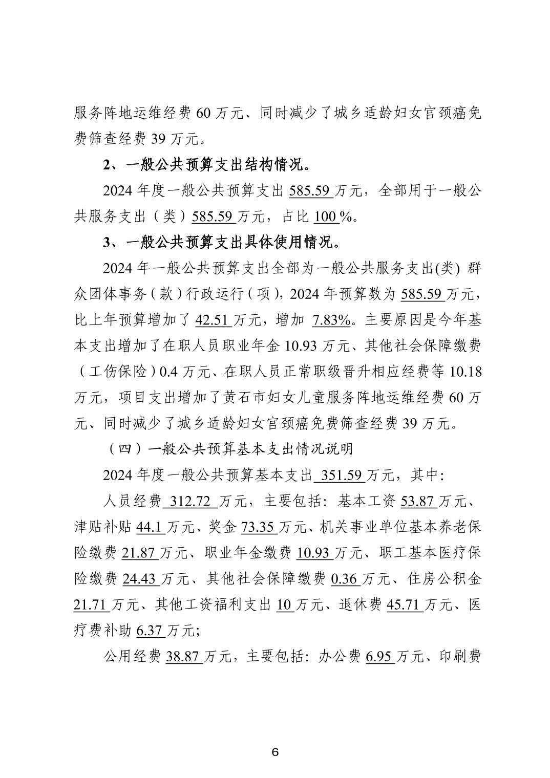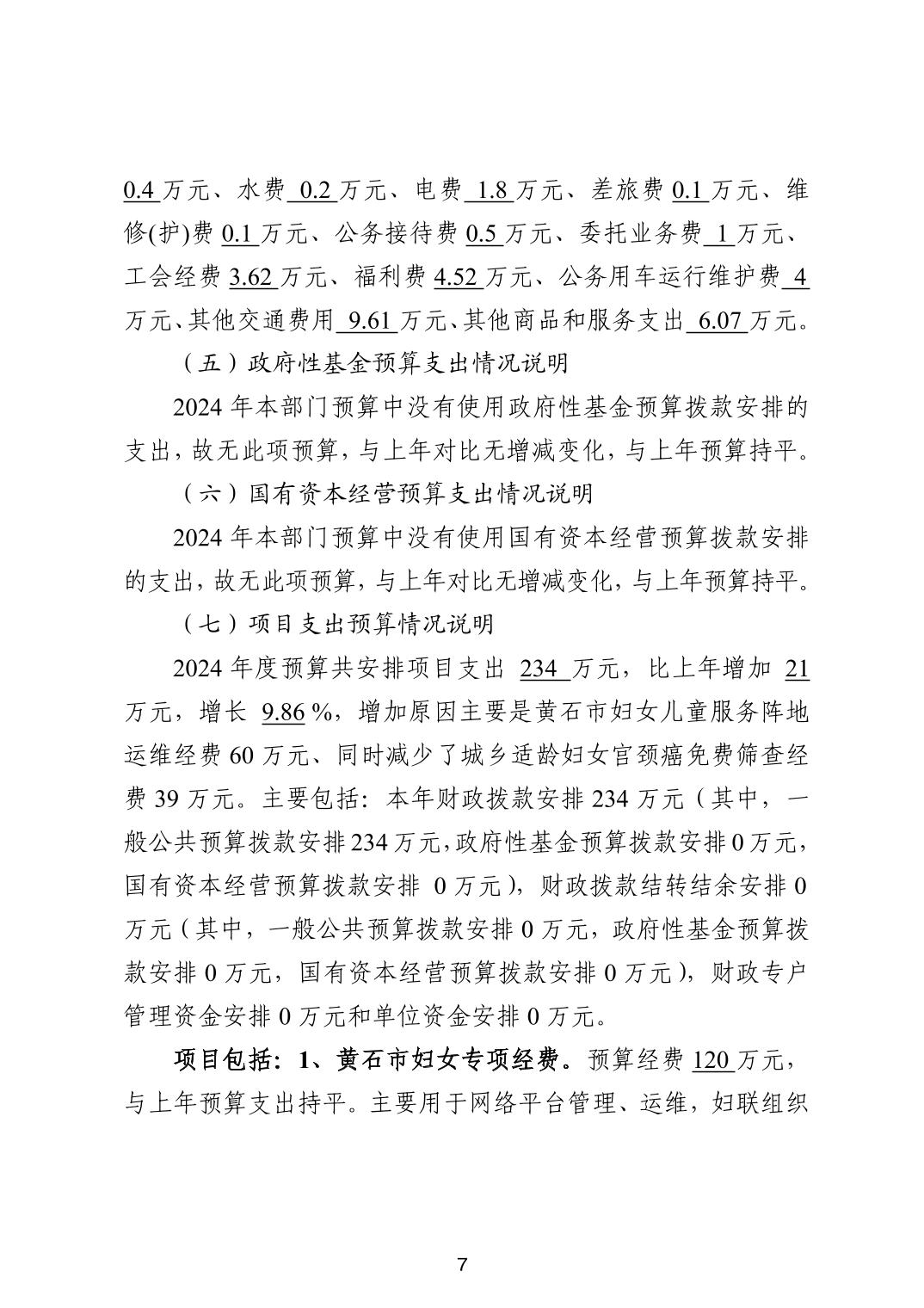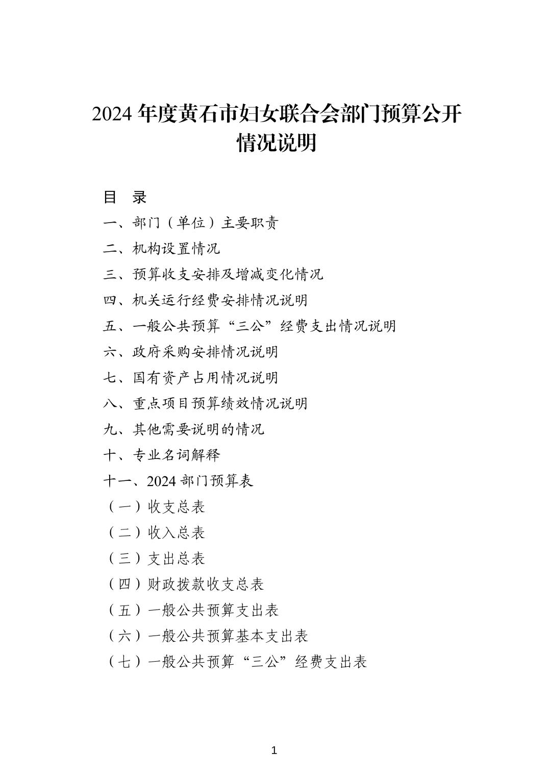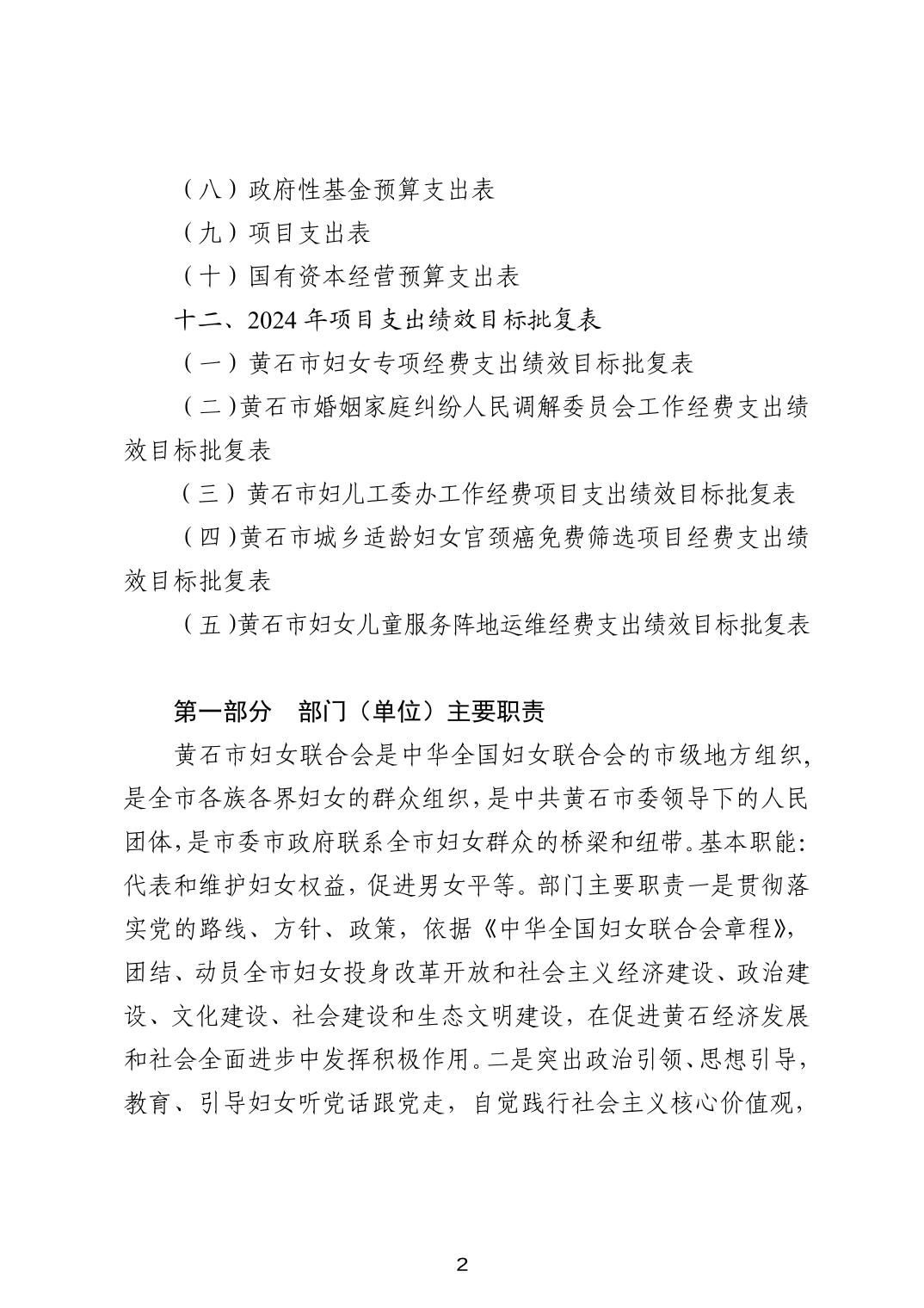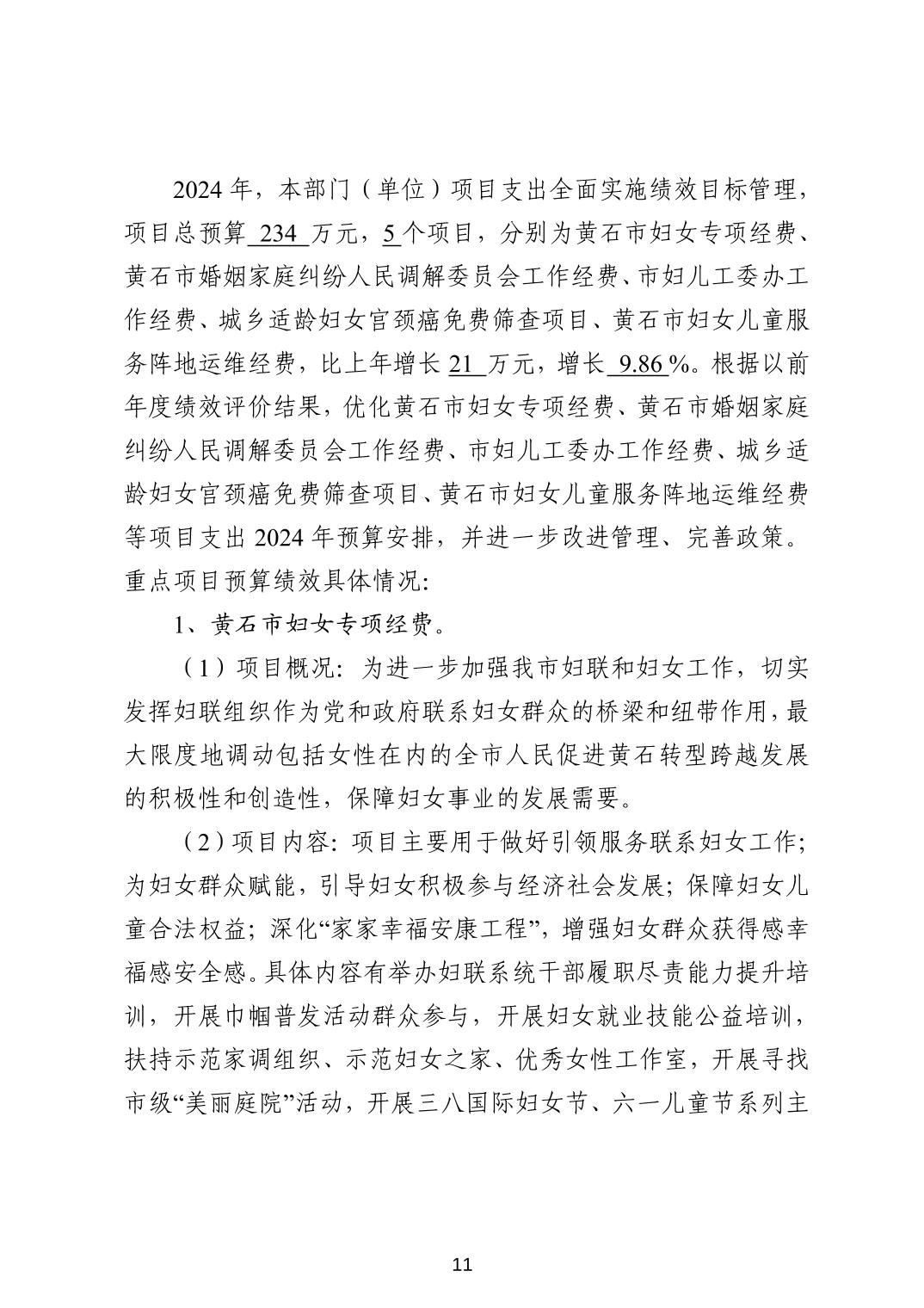 黃石市婦女聯合會2024年部門預算公開情況說明