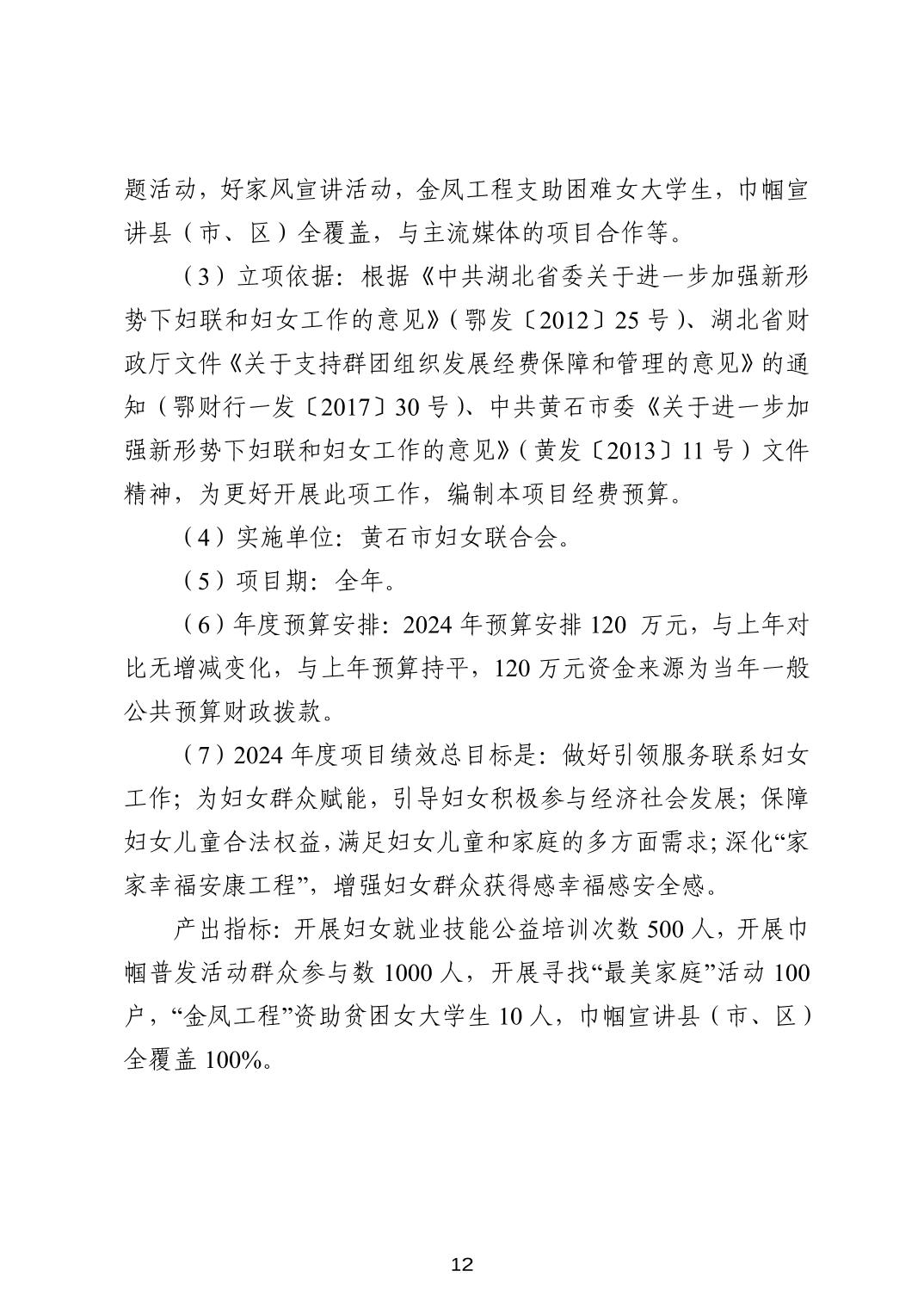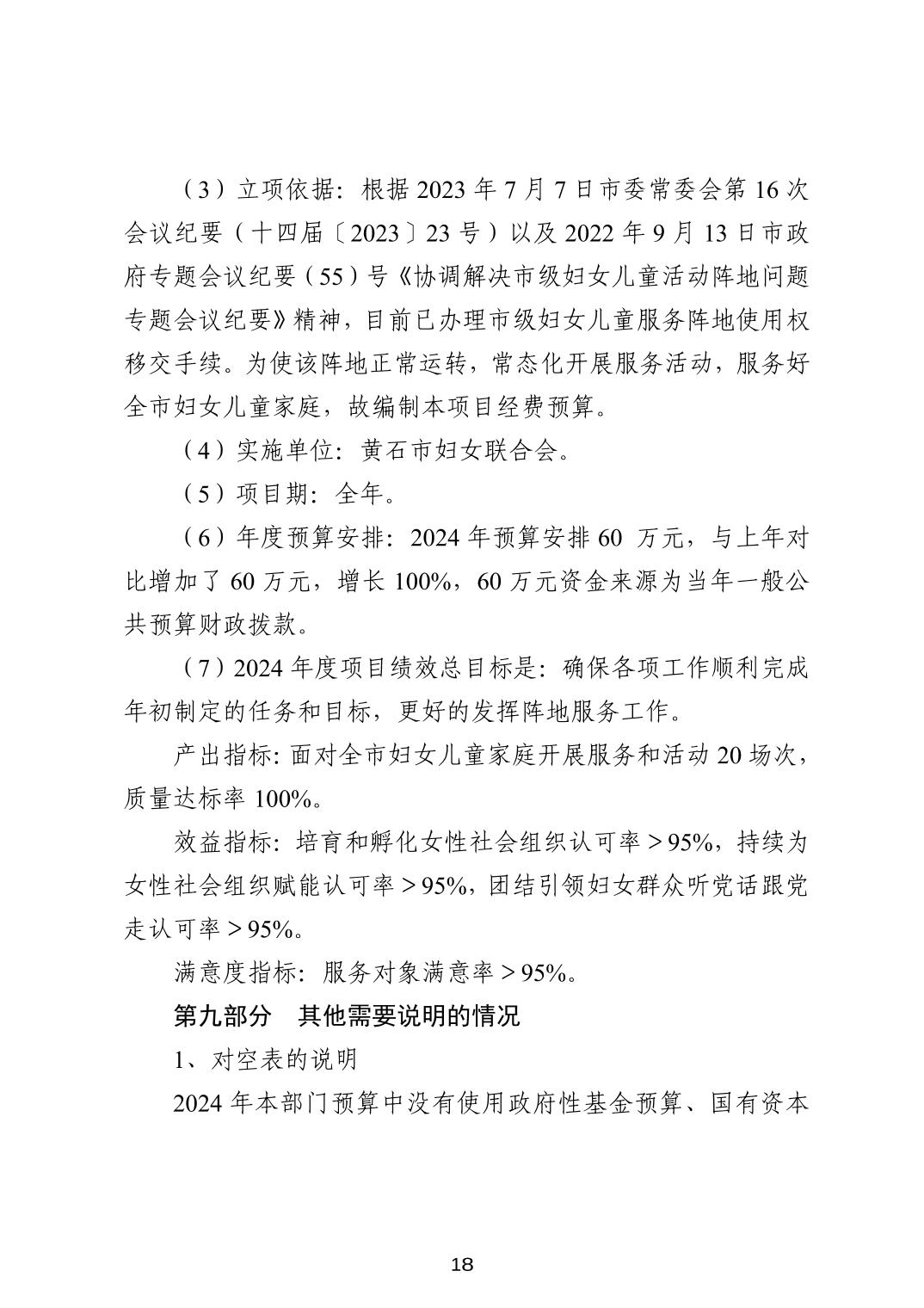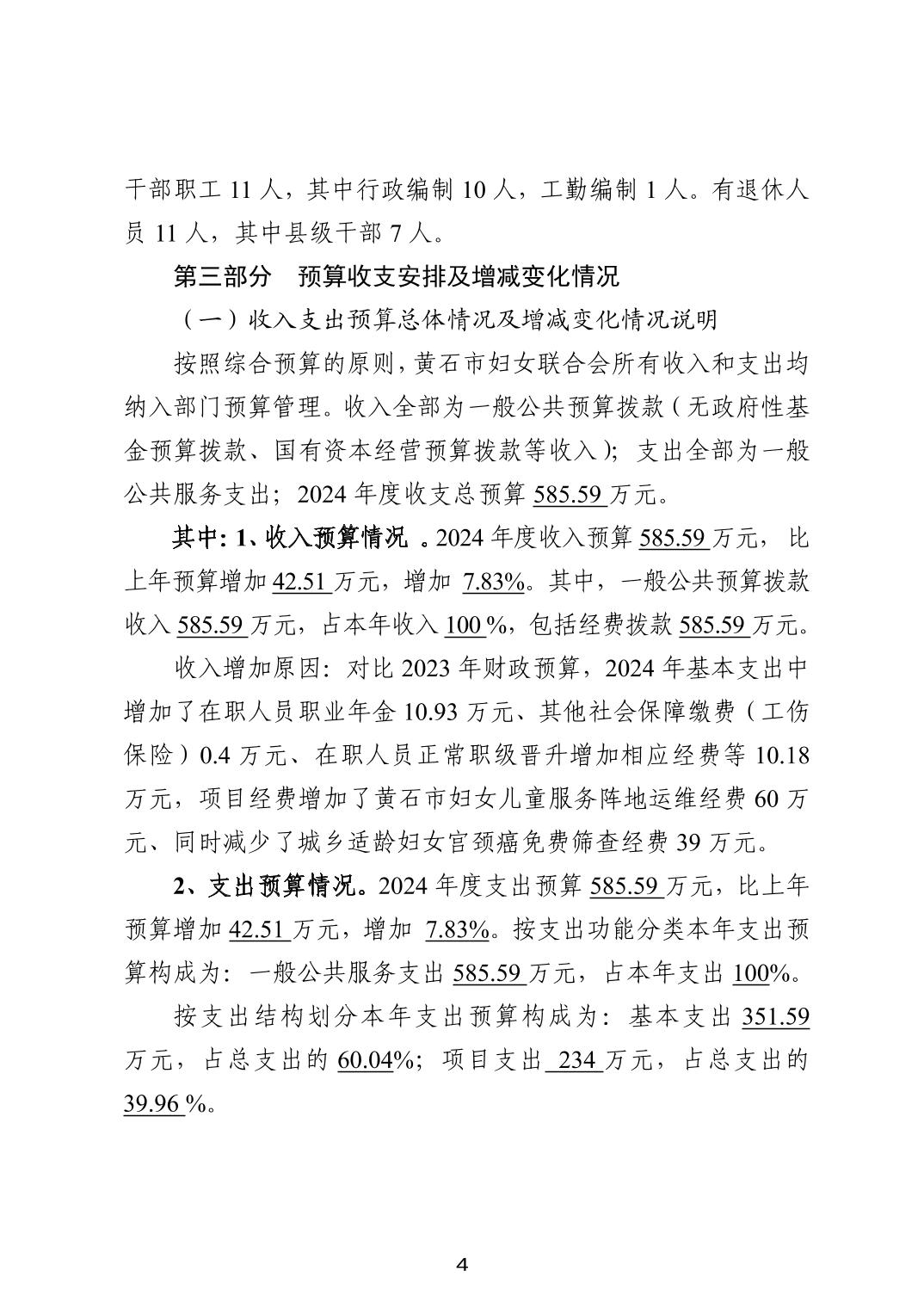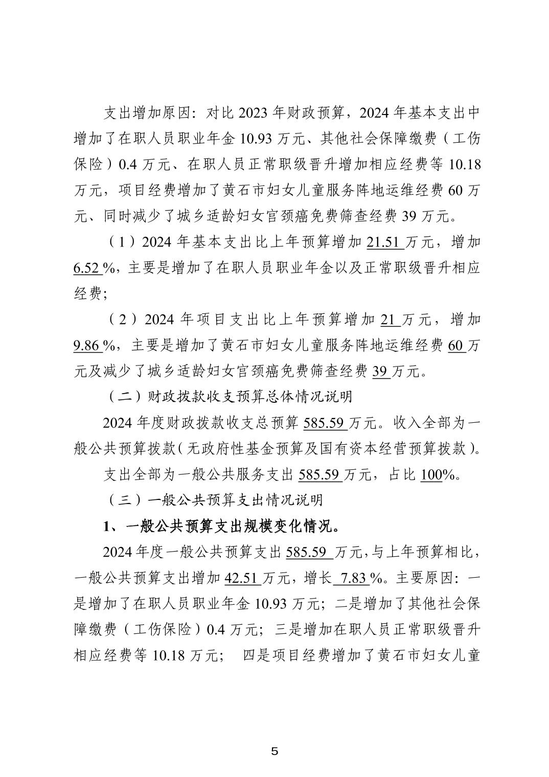 黃石市婦女聯合會2024年部門預算公開情況說明