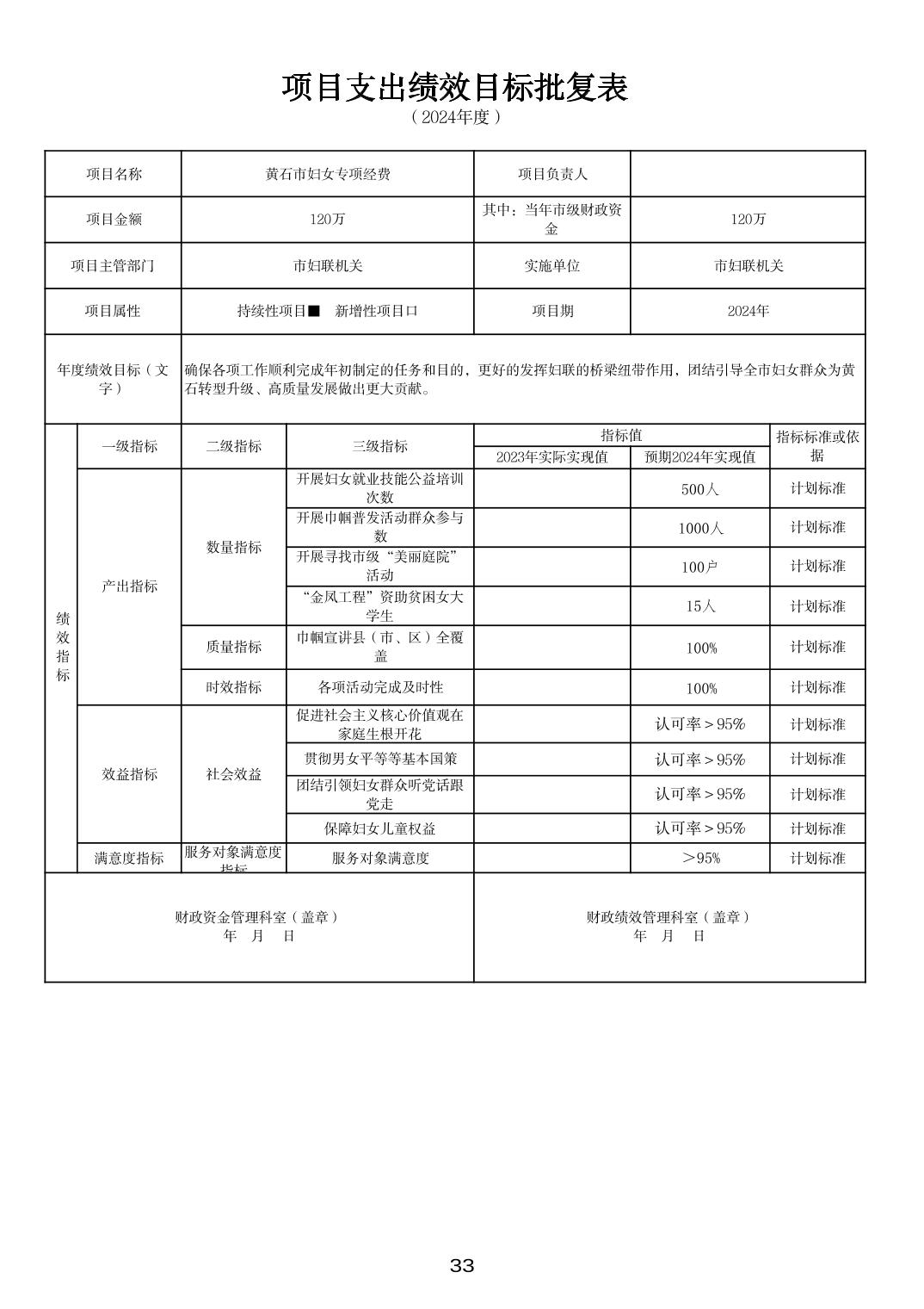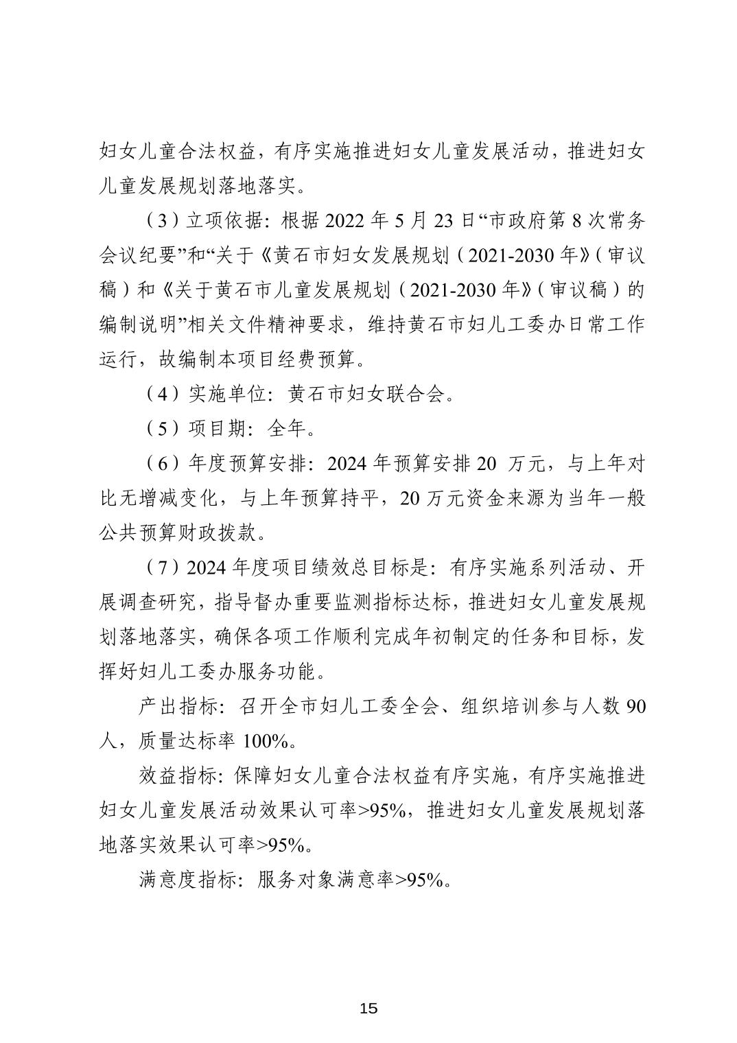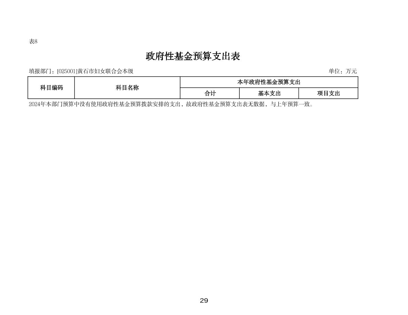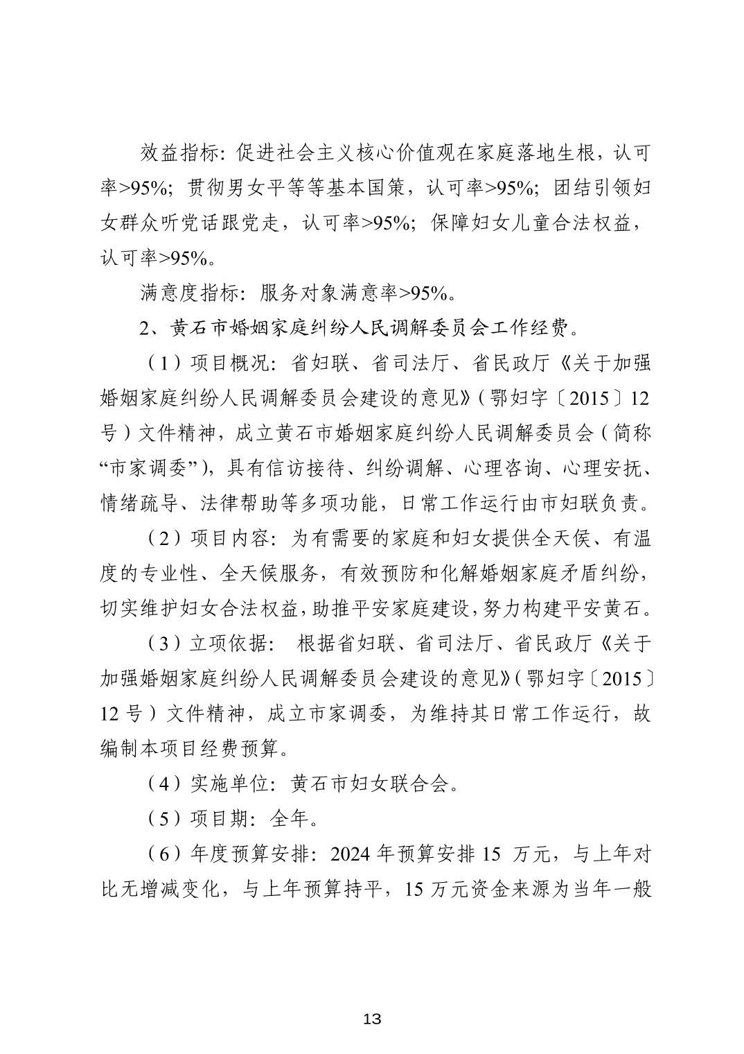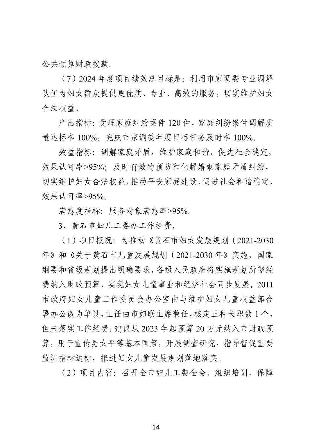 黃石市婦女聯合會2024年部門預算公開情況說明